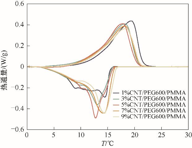 表3 PMMA/PEG600/CNT复合相变材料的相变特性