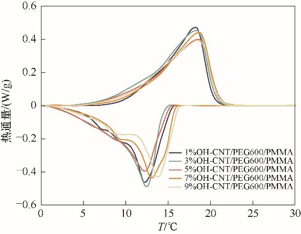 表4 PMMA/PEG600/OH-CNT复合相变材料的相变特性
