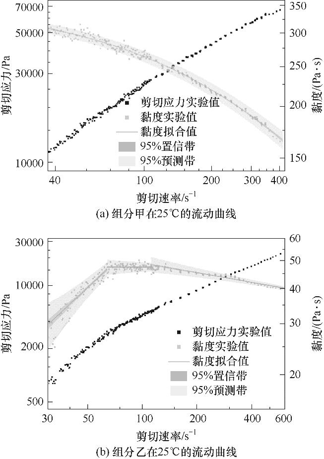 | 组分 | 剪切速率/s-1 | 黏切曲线 | R2 |