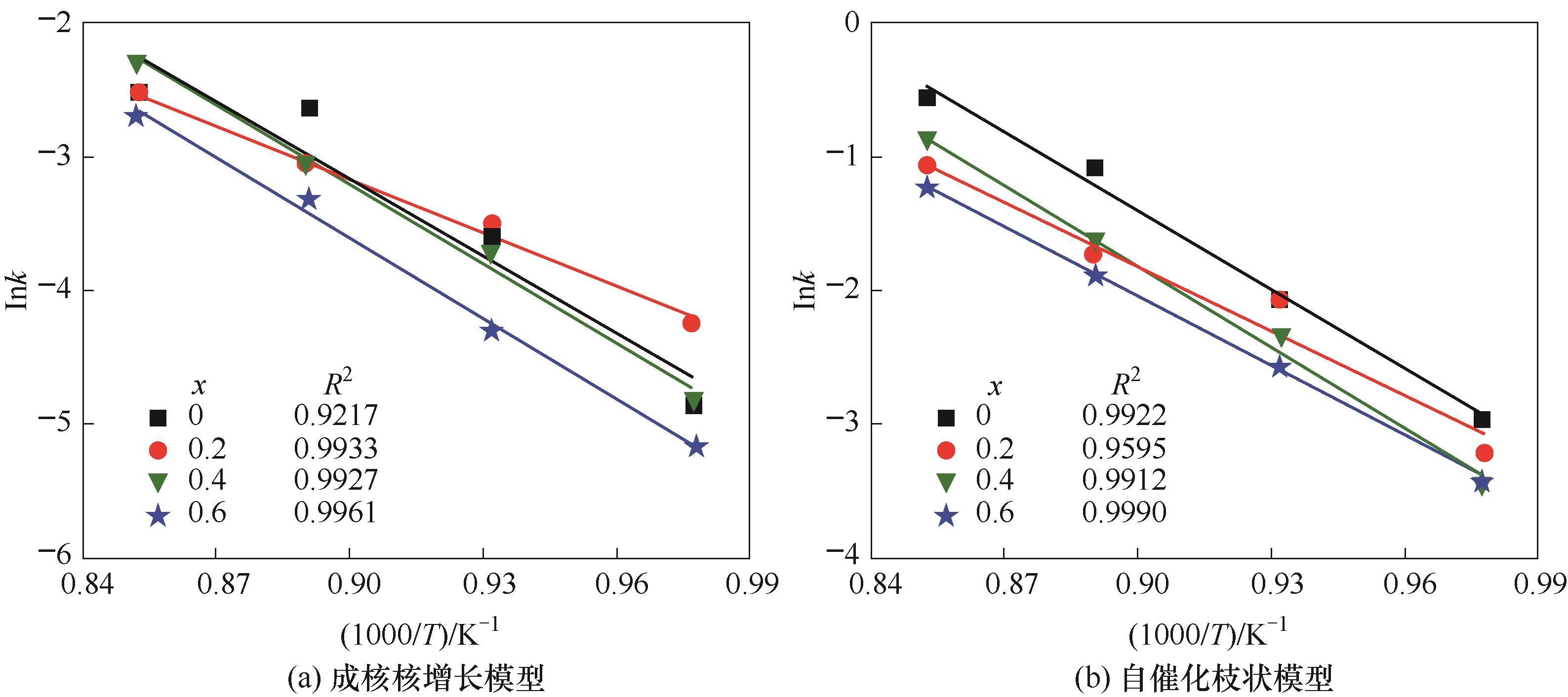 | 活化能/(kJ/mol) | 指前因子/s-1 | 相关系数 | 活化能/(kJ/mol) | 指前因子/s-1 | 相关系数 | |