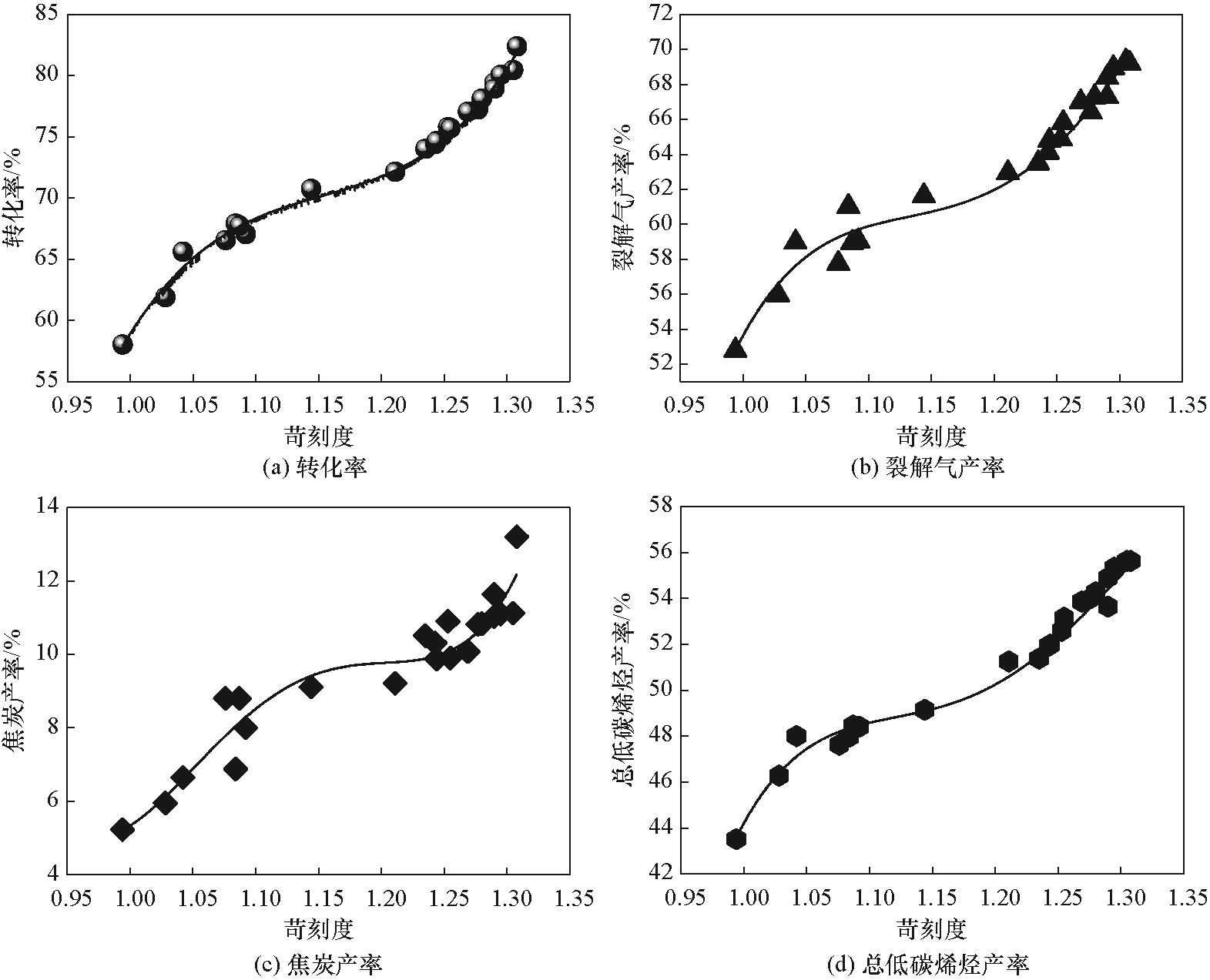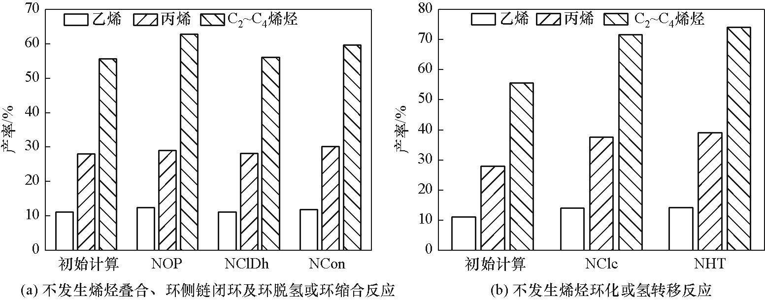 首先通过中试实验获得大庆原油制低碳烯烃的反应规律及优选反应域;然后基于智慧炼化技术进行了分子动力学建模,模型包括原料组成、反应机理制定、反应网络生成、动力学及反应器型式。通过全局优化算法训练实验数据得到动力学参数,模型在馏分产率、气体产率、液体产品烃族组成等方面的计算值和实验值基本一致。利用模型剖析了优选实验条件下原油制低碳烯烃的分子转化路径,定量对比了理论上关键裂解主反应及副反应对低碳烯烃产率的影响,探索了消除副反应后理想情况下的产物分布情况。模型计算发现影响低碳烯烃生成的三个最关键裂解主反应路径为:烯烃中间裂解、烯烃裂解生成丙烯、丁烯及烷烃中间裂解反应;三种影响低碳烯烃产率的主要副反应为:氢转移、烯烃环化及烯烃叠合反应。利用模型对最优化实验点进行计算,模拟优化在消除所有副反应后,乙烯、丙烯及丁烯产率分别提升3.91、10.88及10.51个百分点,总低碳烯烃产率相对提高约45.5%(质量分数)。