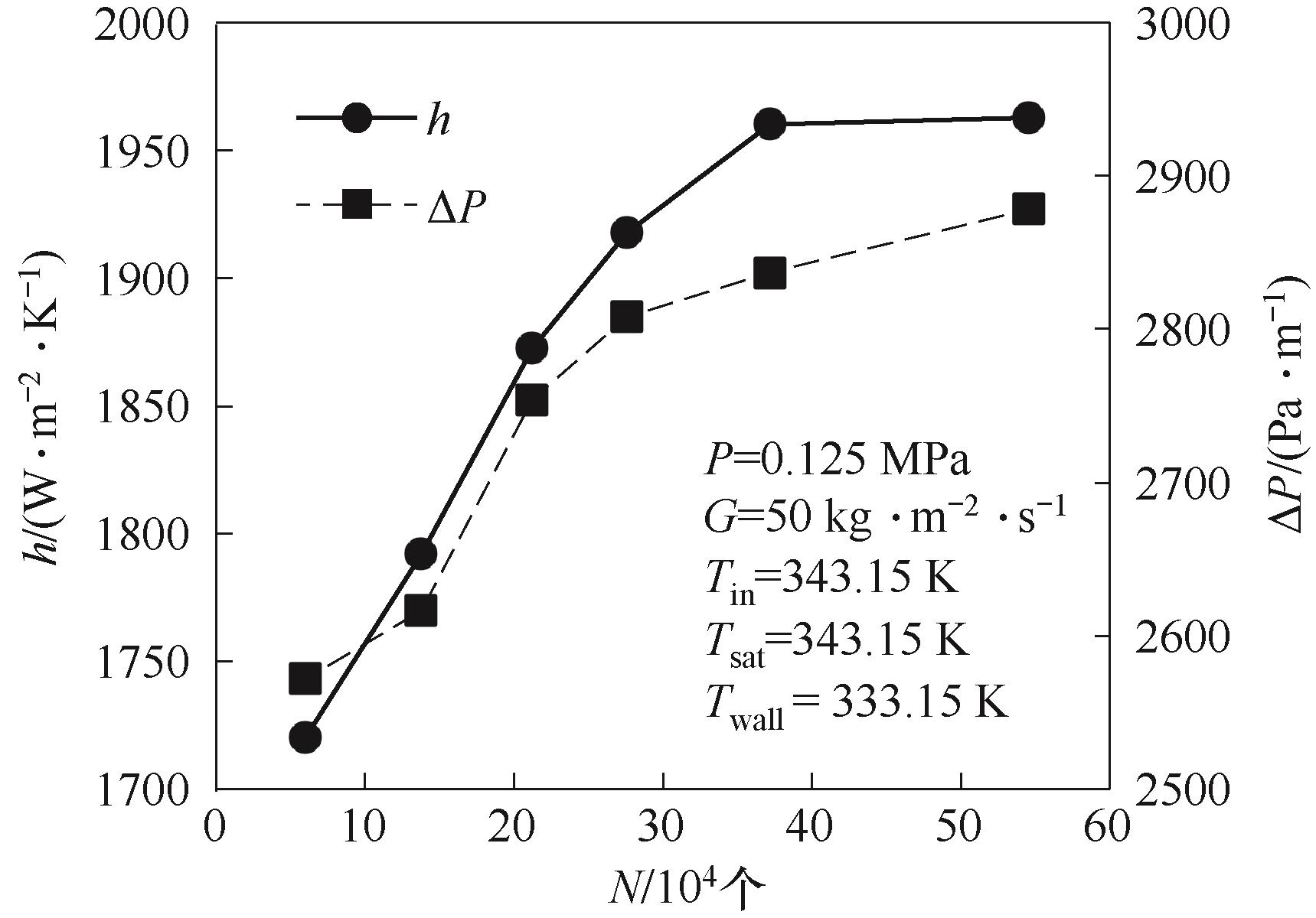 采用数值模拟研究了甲醇在水平圆管内的流动冷凝过程,探究了不同质量通量下蒸汽干度对甲醇冷凝换热及压降特性的影响,分析了冷凝过程中的流型转换和液膜特性。结果表明,在干度为0.87~0.95时传热系数达到峰值,质量通量为25~75 kg·m-2·s-1时,峰值对应干度从0.87增加到0.95;压力梯度随着质量流量、干度的增加而增加,但干度大于0.9时,压降梯度随着干度的增加而减小。模拟工况下甲醇冷凝流动过程主要流型为雾状流/环状流以及波状流/分层流。截面液膜厚度在θ =90°处达到局部最小值,质量通量的增加提升了液膜分布均匀性。