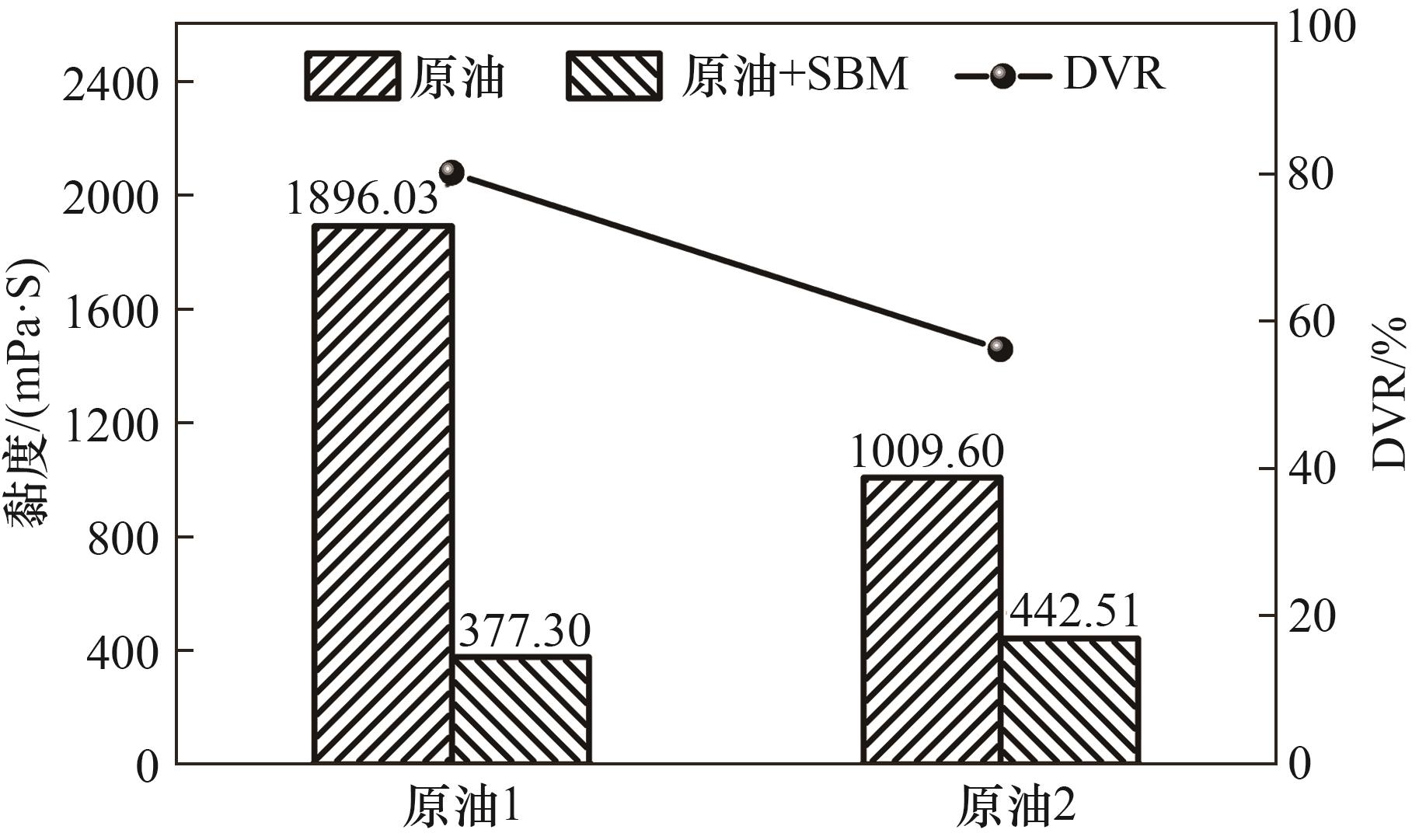 油溶性降黏剂因能耗低、操作简便,被认为是稠油开采和运输过程中极具应用前景的降黏剂,但存在降黏效率低、降黏机理尚不明确等问题。以甲基丙烯酸十八酯、甲基丙烯酸苄酯和马来酸酐为单体,通过自由基聚合反应合成了三元共聚物降黏剂SBM,探究其降黏效果,采用分子动力学模拟方法对其在不同类型稠油中的降黏过程进行微观机理研究。研究结果表明,该降黏剂对胜利稠油降黏效果最好,表观降黏率可达66.67%,净降黏率可达27.34%;对原油1的降黏效果优于原油2,在原油1中降黏效果主要与π-π相互作用有关,在原油2中降黏效果主要与氢键相关。