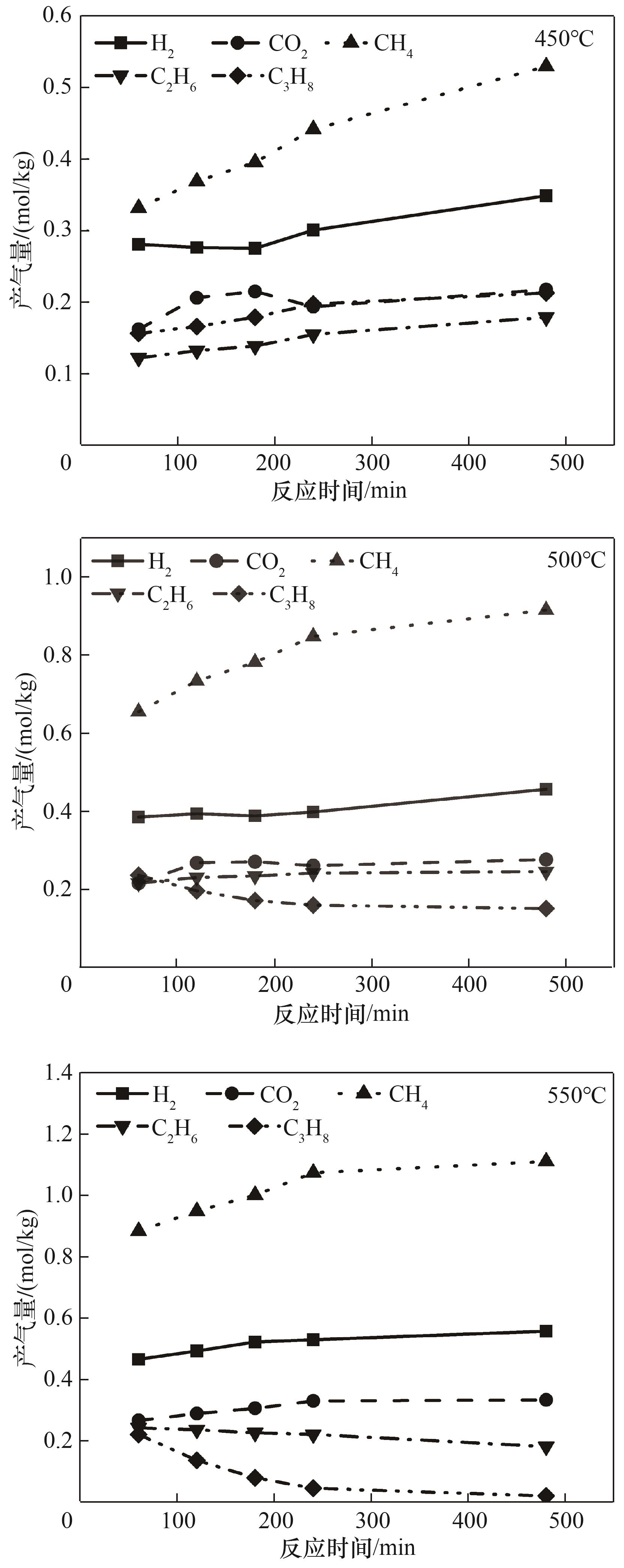 Table 2 Produced oil components at 450 and 550℃ at 240 min