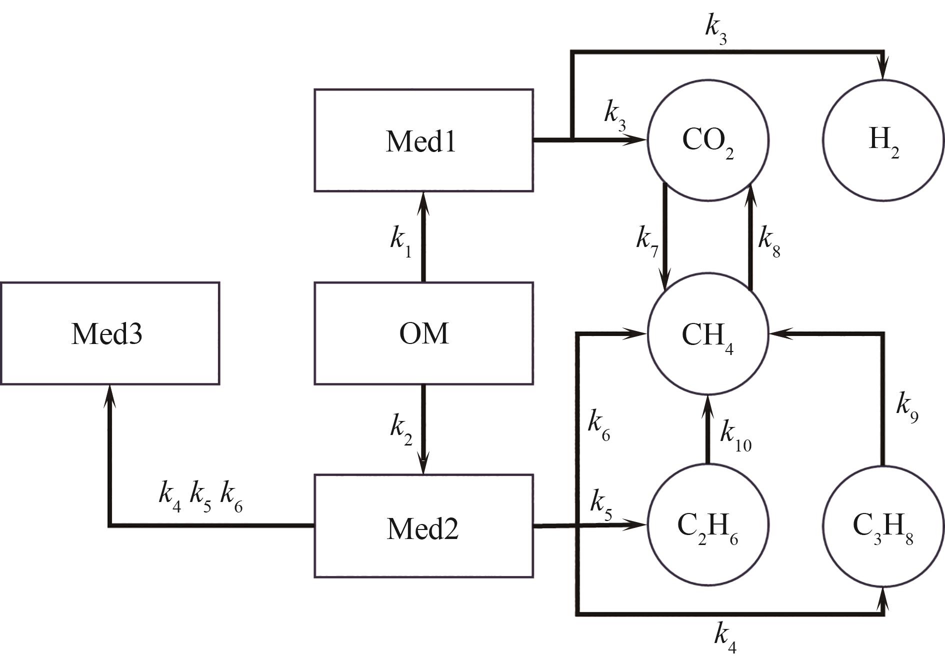 为研究超临界水转化页岩的产气动力学机理,在间歇式高温高压反应器内进行了实验,反应温度450~550℃,反应时间为0~480 min。实验结果表明,中间体产物成分复杂,以邻苯二甲酸二丁酯和萘的衍生物为主。产生的气体主要是CH4、C2H6、C3H8、H2和CO2。总气体生成量随着温度的升高和反应时间的延长而增加。采用基于Peng-Robinson(PR)方程的简单迭代法计算混合气体的物质的量。基于实验结果与集总参数法,建立了页岩-中间体-气体的反应动力学模型。该模型可以较好地解释超临界水氛围中页岩因化学反应而产生的油气变化,并可以定量描述气体之间的相互转化。该模型的计算值和实验值的决定系数大于0.98,表明在实验温度范围内,能在可接受的偏差内拟合不同反应时间的气体浓度。本研究对超临界水转化页岩的产气机理有了更深入的认识。