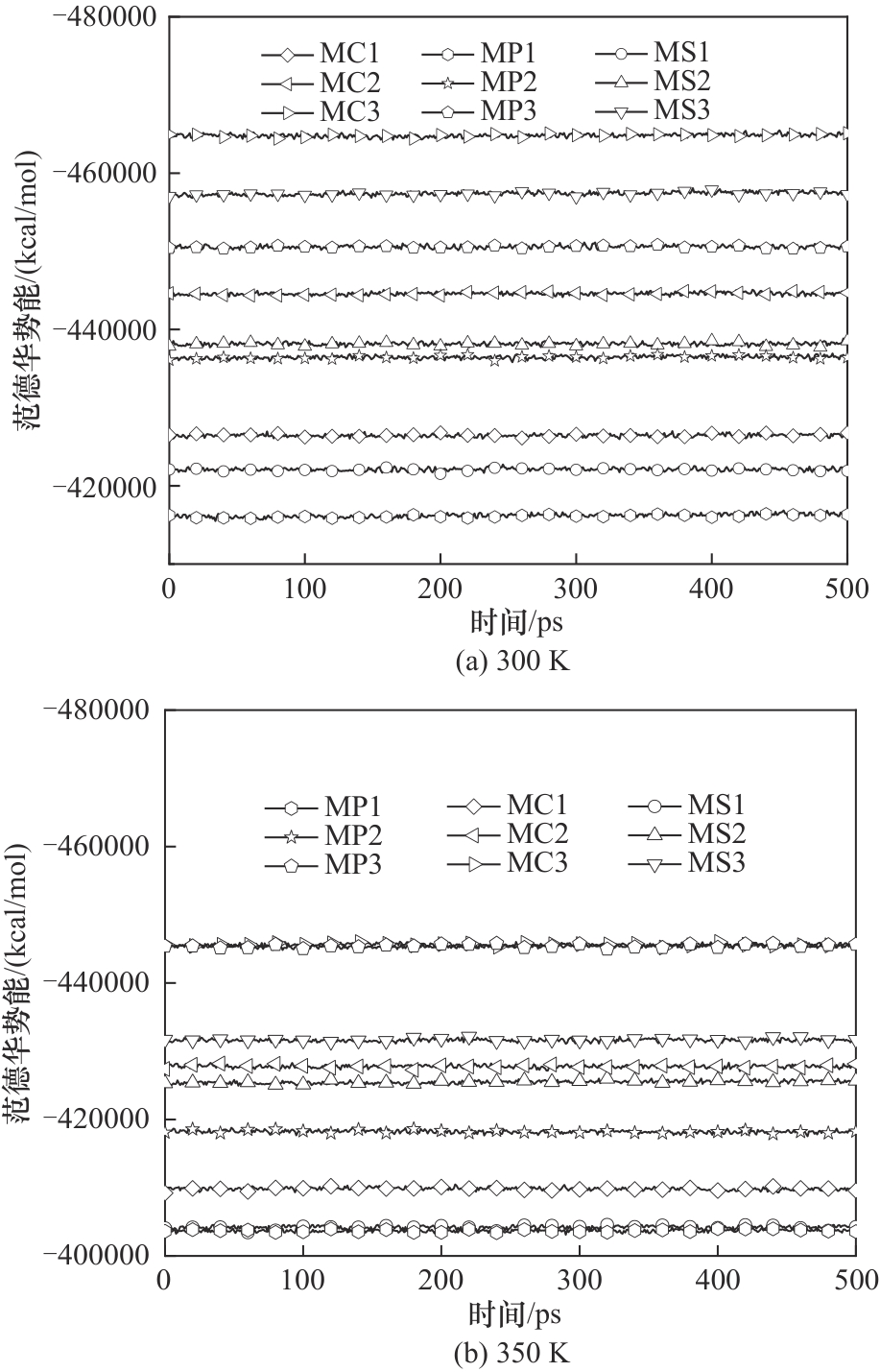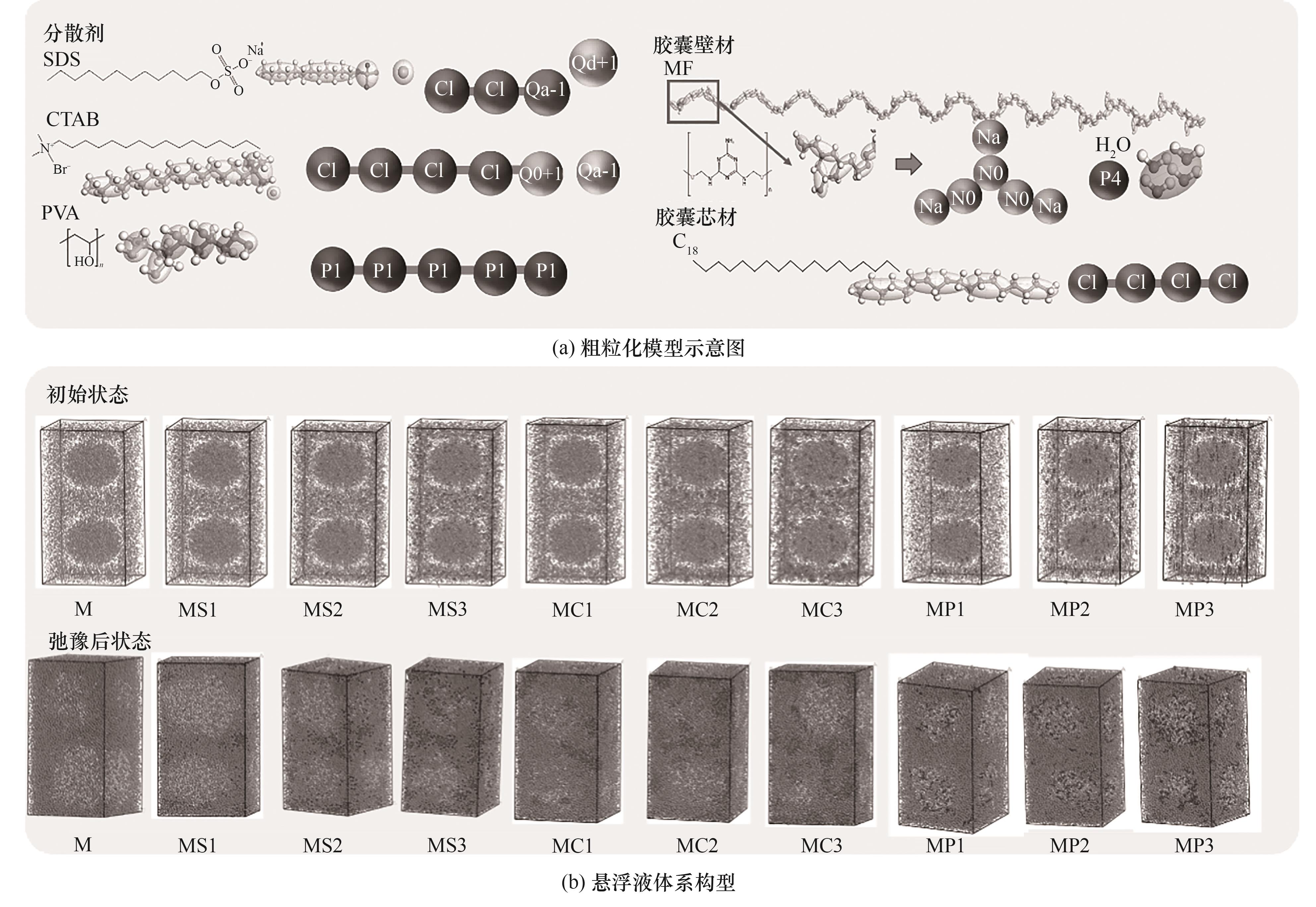 相变微胶囊在液体介质中的分散稳定性是潜热型功能流体服役性能的关键影响因素。通过添加分散剂可强化潜热型功能流体的稳定性,但分散剂本征特性和服役环境等因素对其稳定性的影响规律和调控机理尚不清晰。因此,构建了潜热型功能流体的粗粒化分子动力学模型,研究了非离子型、阴离子型和阳离子型分散剂的微观结构、组分及温度对潜热型功能流体稳定性的影响规律。结果表明,添加分散剂可改善功能流体中胶囊的团聚现象,但分散剂类型和温度对稳定性的影响存在显著差异;分散剂对潜热型功能流体分散稳定的促进作用由大到小依次为:非离子型聚乙烯醇(PVA)、阴离子型十二烷基硫酸钠(SDS)、阳离子型十六烷基三甲基溴化铵(CTAB)。