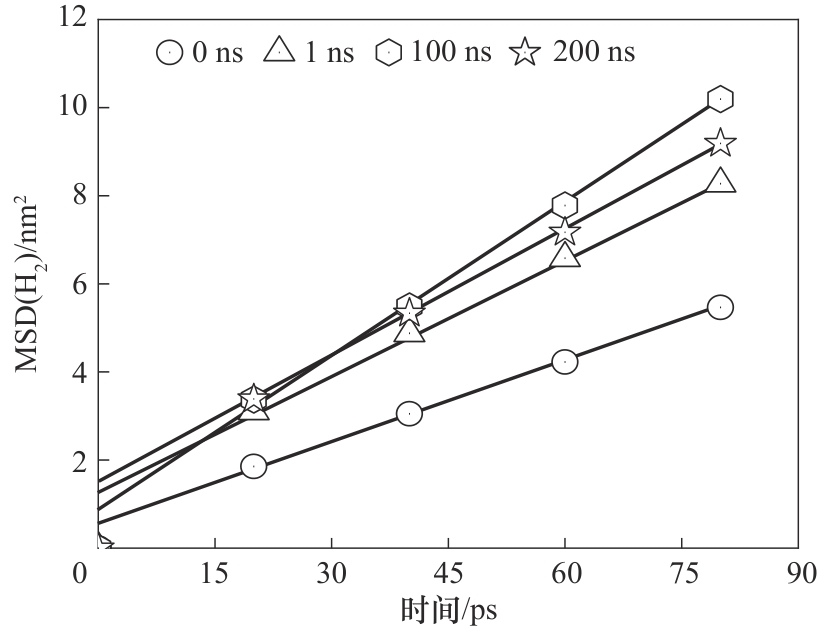 Table 3 Diffusion coefficients of hydrogen molecules and methane molecules at characteristic moments