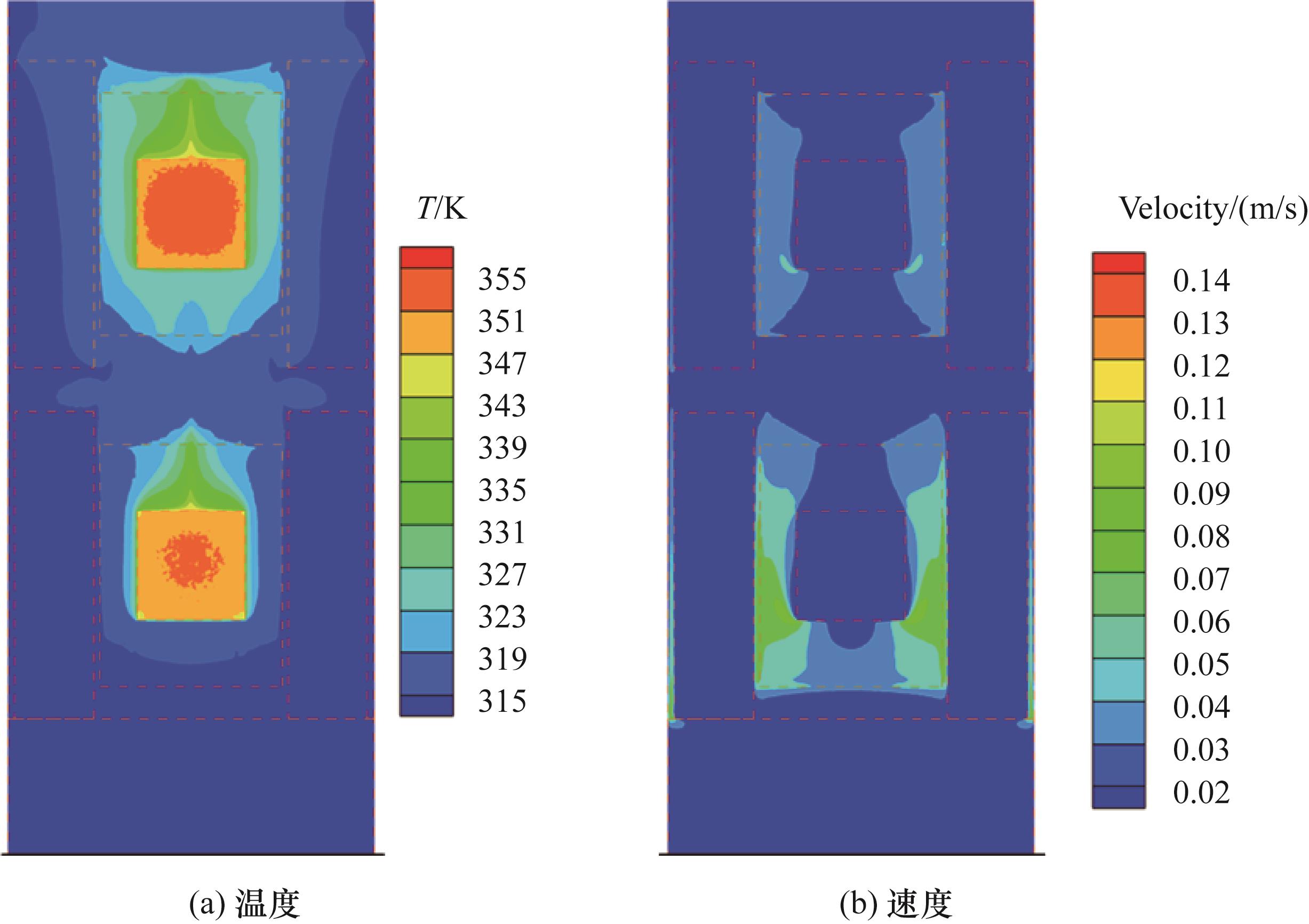 图6 使用SS-110冷却液时高度为0.21 cm处截面的温度和速度