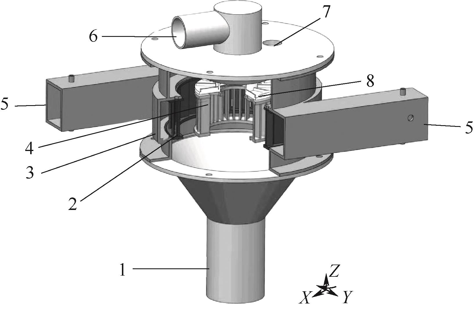 Key words: powder, numerical simulation, pneumatic classifier, dual-layer rotor cage, secondary classification, dispersion