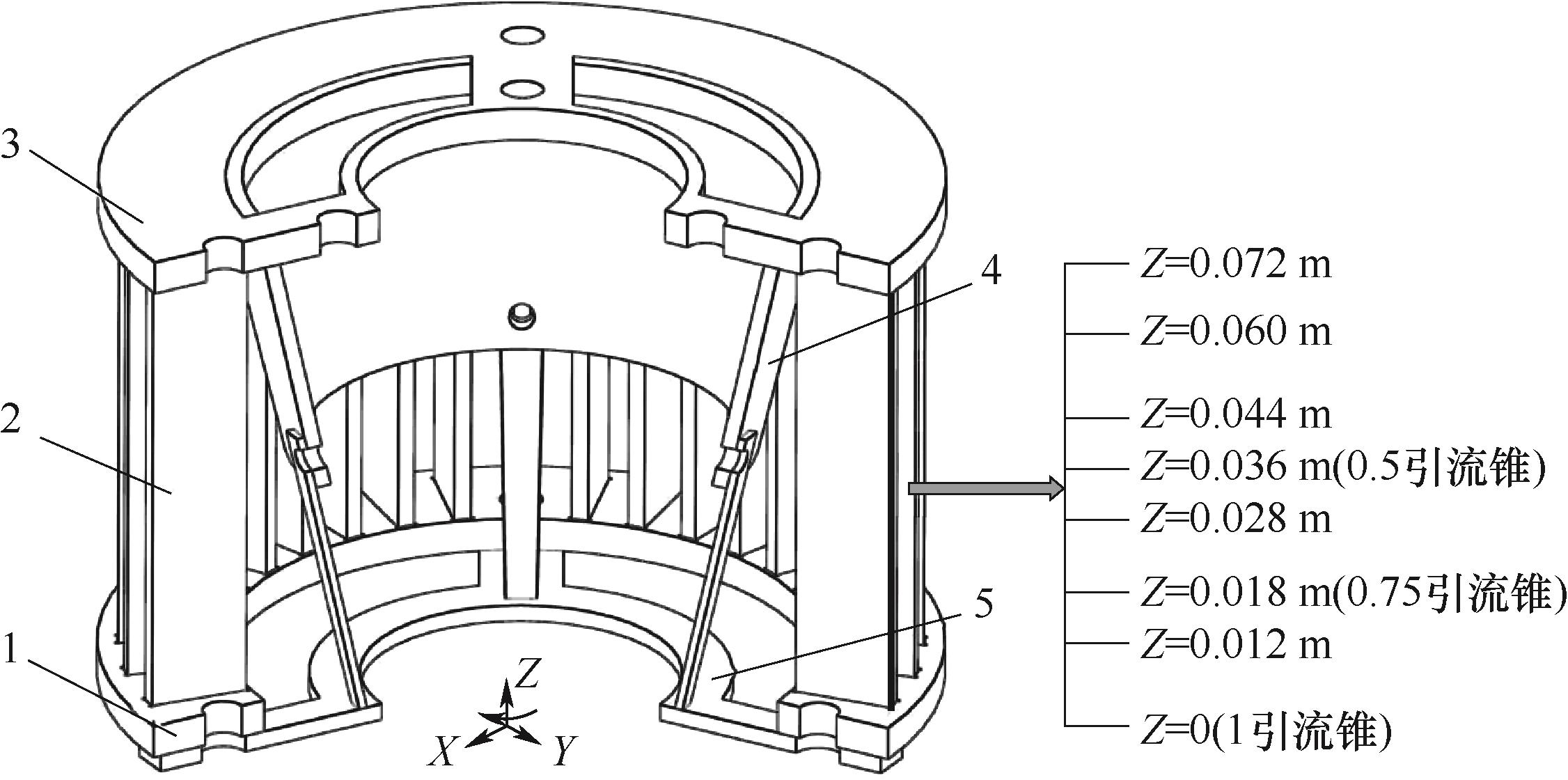 超细粉体因其物化特性应用广泛,制备粒度分布窄而细的超细粉体是提升产品性能的关键。在不增加能耗和设备复杂度的前提下,设计了双层转笼结构,通过数值模拟与分级实验,分析了其对气力分级机流场及细粉产品分布的影响。模拟结果表明,双层转笼引流锥由于重力分级作用使环形区气流在近转笼外缘向下运动且径向速度减小,改善了环形区粉体分散性并减小了细粉粒径。物料分级实验结果验证,双层转笼显著减小细粉粒径,且随引流锥长度增加,细粉粒径更小、粒度分布更窄,二次分级效果更为显著。