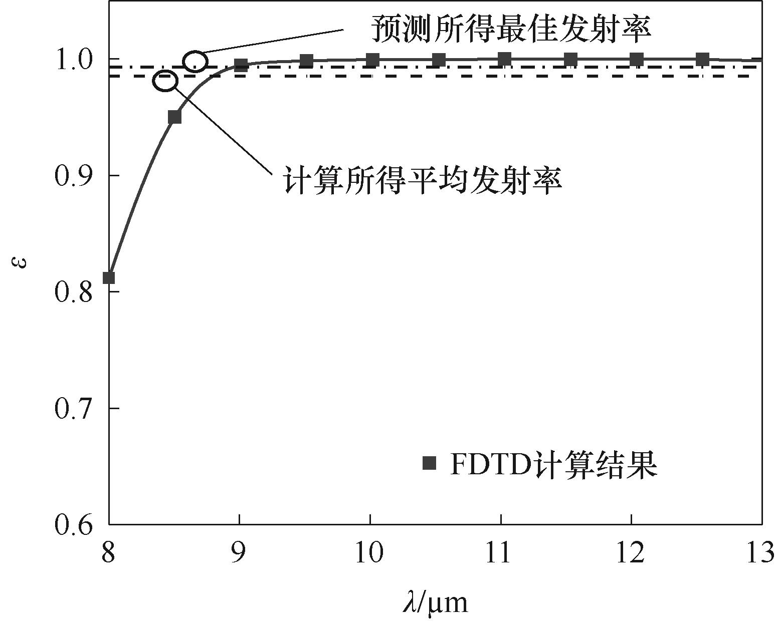 为构建具有高发射率的表面微结构,提高其辐射制冷性能,针对一种具有四棱台周期性特征的辐射制冷微结构,开展了其大气窗口发射率的优化研究。首先,基于时域有限差分(FDTD)方法,计算了不同几何参数条件下的光谱特性;然后,基于大量数据,建立了利用神经网络方法的发射率预测机器学习模型;最后,结合自适应粒子群优化算法(APSO)实现了发射性能优化,获得最佳几何参数组合,并分析了不同结构参数对大气窗口平均发射率的影响。结果发现,利用FDTD计算结果和神经网络算法的机器学习模型,可以实现此类结构发射率的高精度预测。不同几何参数对发射性能的影响不同,最佳参数组合下,此类微结构的大气窗口平均发射率接近于1,具有很强的辐射制冷能力。