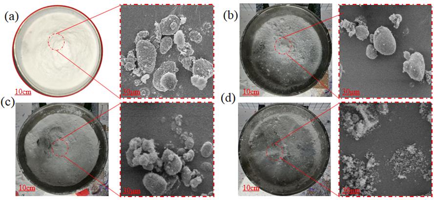Fig.11 Changes in different dry water particle size and morphology before and after dispersal