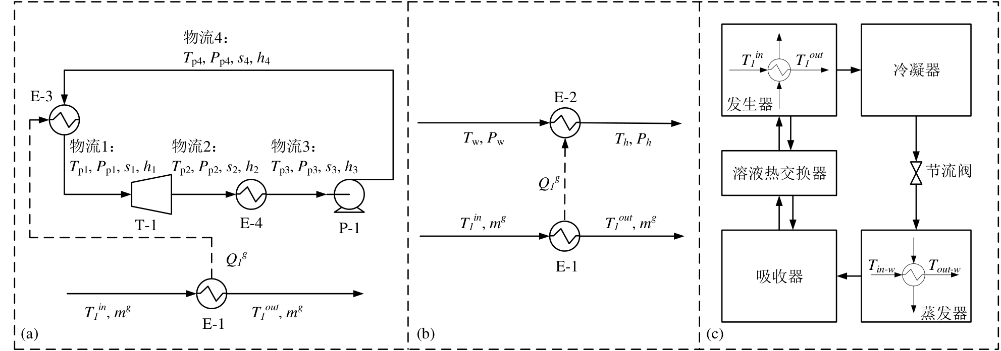 Fig.2 Schematic diagrams of different production pathways: (a)Power generation system; (b)Steam generation system; (c)Absorption refrigeration system