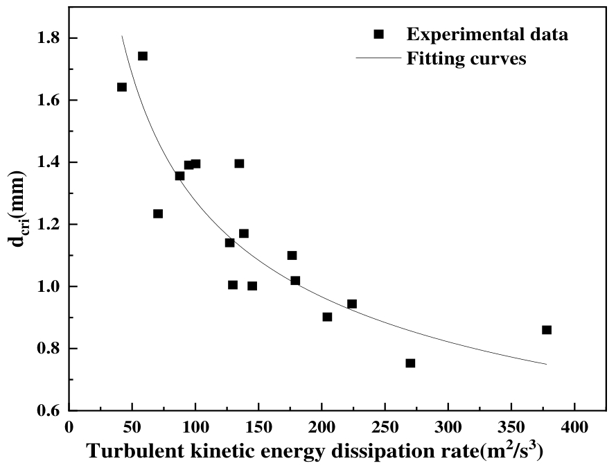 | 序号 | 粒径/mm | 湍动能耗散率/m2/s3 | 临界Weber数 | 水力旋流器Weber数 | 毛细管数 |