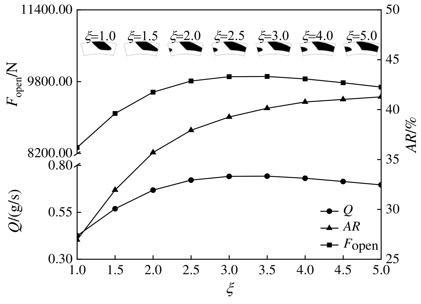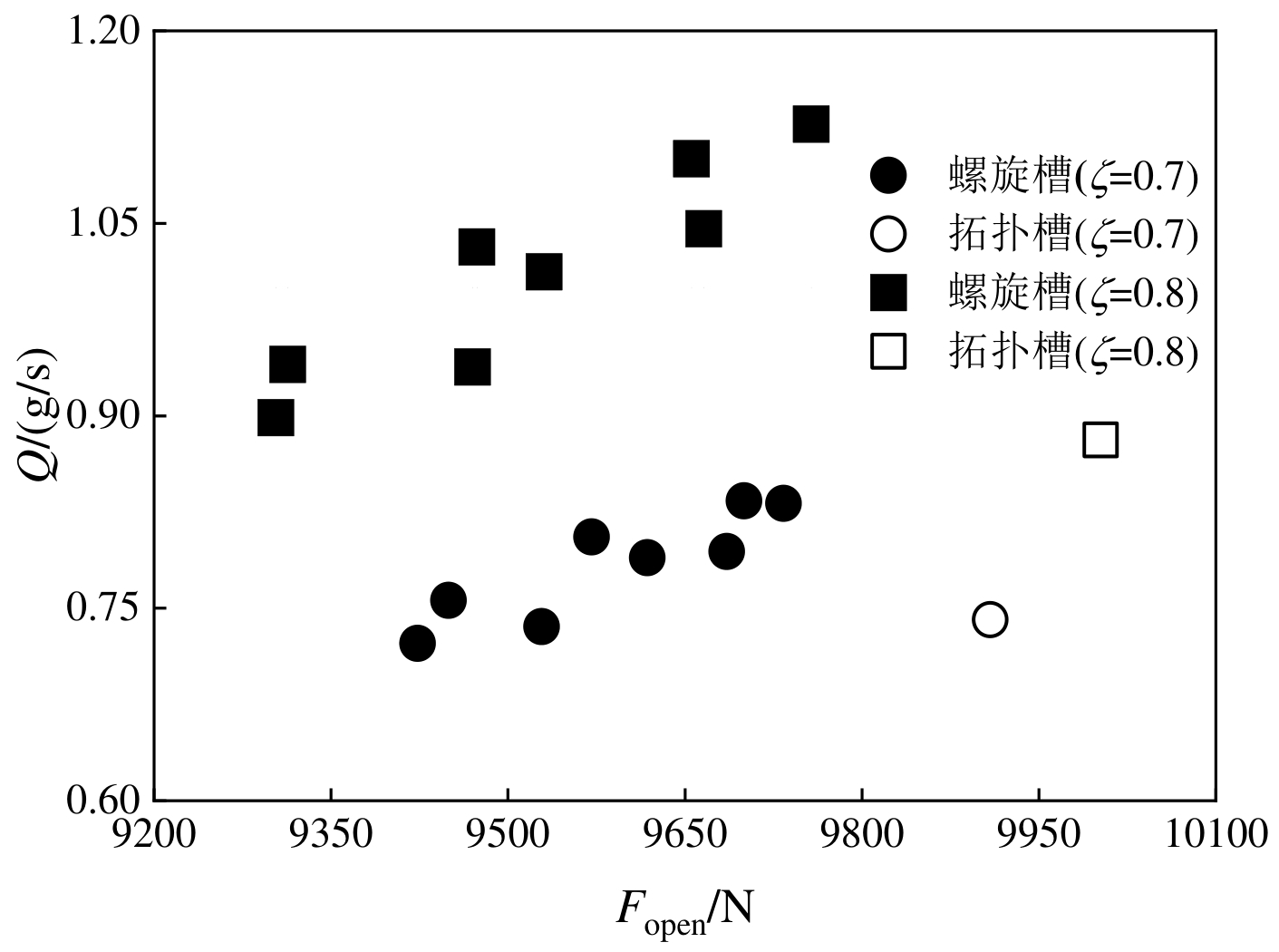针对参数化优化方法在机械密封端面槽型优化上的局限性,以涡轮泵用深冷低粘气氧润滑机械密封端面为优化对象,提出了一种适用于气体润滑密封型槽设计的拓扑优化方法并构建相应的拓扑优化模型,基于有限元方法开展了多工况和几何参数下的槽型拓扑优化设计。研究表明,该方法具有较好的鲁棒性且对初始拓扑结构不敏感,获得的型槽拓扑结构与基于反应扩散方程的拓扑优化方法获得的液体润滑端面型槽结构相似。最终优化槽型与槽坝比、槽深比、设计域周向角以及密封压力、转速相关,推荐的槽坝比为0.7-0.8,槽深比为3.0-3.5。在相同周向角和槽深比条件下,拓扑优化型槽相较于传统螺旋槽展现出更优的综合密封性能:气膜开启力平均提升3.78%–5.64%,泄漏率平均降低3.95%–10.22%。为高性能气体润滑端面密封设计提供了可靠的理论依据与参数指导。