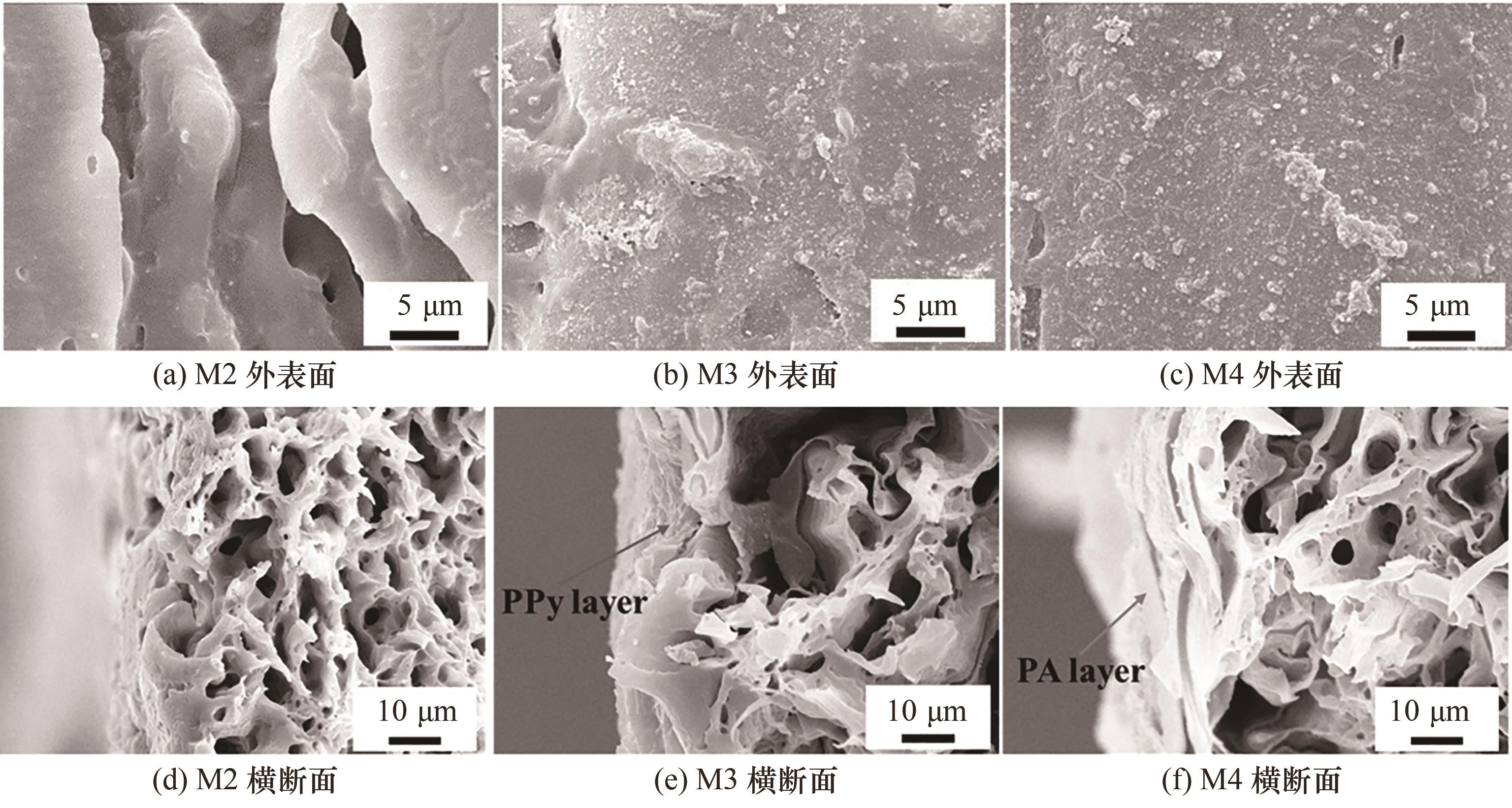 利用膜分离技术进行染料脱盐,对实现纺织印染废水的清洁处理与资源回收具有重要意义。以聚全氟乙丙烯(FEP)中空纤维膜为基膜,通过邻苯二酚(CA)和聚乙烯亚胺(PEI)共沉积改善膜表面亲水性,利用聚吡咯(PPy)构筑中间层优化界面聚合过程,制备FEP中空纤维复合膜。结果表明:改性后,膜表面的水接触角由122°降至39°,亲水性改善;当吡咯(Py)浓度为10%(质量分数)时,所得复合膜综合性能最佳,对考马斯亮蓝和刚果红等的截留率达95%、NaCl和MgSO4等的截留率均低于8%,可实现染料与无机盐的高效分离。经有机溶剂处理以及在高运行温度(80℃)下,膜的截留率保持稳定,显示耐热和耐溶剂性良好。此外,FEP中空纤维复合膜还可实现二元染料分离。