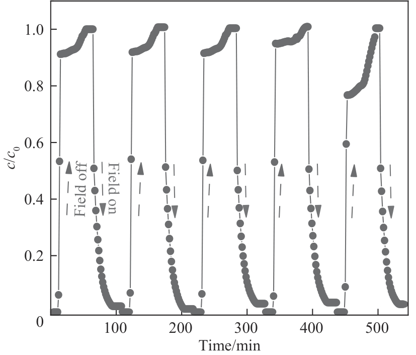 磁诱导的变温吸附因其操作便捷、产热速率快以及传热距离短而备受关注,其能源利用效率由吸附材料在磁场中的性能决定。目前的吸附材料性能难以调变,无法在磁诱导变温吸附中充分发挥其分离性能。构筑了磁响应柔性吸附材料MN@CPL-1,并将其应用于丙烯捕获。通过将Fe3O4纳米颗粒与柔性MOF材料原位复合实现材料的制备。当交变磁场关闭时,MN@CPL-1具有开放的孔结构,能够有效地捕获丙烯分子。当交变磁场打开时,磁诱导的热量从Fe3O4纳米颗粒快速转移至CPL-1,使其框架结构发生局部旋转,促使丙烯分子释放。最优样品在10~30℃变温区间内的工作容量(22.5 cm3·g-1)优于很多经典的丙烯吸附剂,如MIL-101(14.45 cm3·g-1)、MAC-4(13.00 cm3·g-1)和沸石5A(4.14 cm3·g-1)。在外部磁场调控下,最优样品的吸附量变化率达到了65.9%,并且经过5次交变磁场关闭/打开吸脱附循环后,复合材料依然能保持良好的吸附性能。磁感应产热与吸附材料柔性结构的耦合提升了吸附效率。