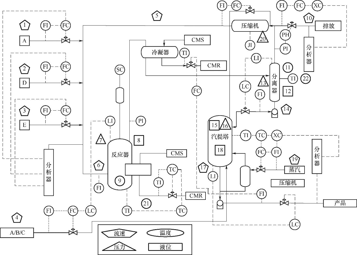 | 8 | 反应器液位 | L8 | 19 | 汽提塔流量 | F19 | 30 | 汽提塔产品出口阀 | V30 |