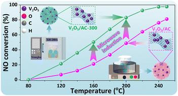 | V2O5@AC | 微波浸渍法 | 300 | - | 99.7 | 诱导V2O5的高分散性和活性位点的暴露,产生更多的配位不饱和V和缺陷;会使部分催化剂比表面积和孔体积减小 | [ |