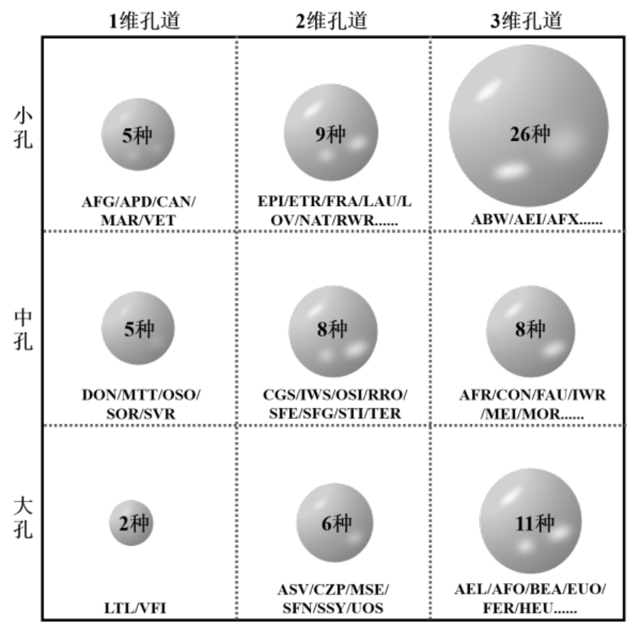 | PSmin | IZA | 沿三维方向最小球体直径 | Å |