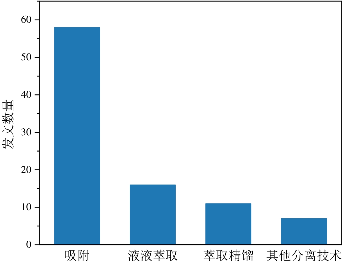 Fig.3 Statistics of the number of published papers on benzene/cyclohexane separation methods in the past five years based on the Web of Science (WOS) database(Note: The data retrieval range is "last five years", the search keywords are "benzene cyclohexane separation", and the document type is limited to "Article")