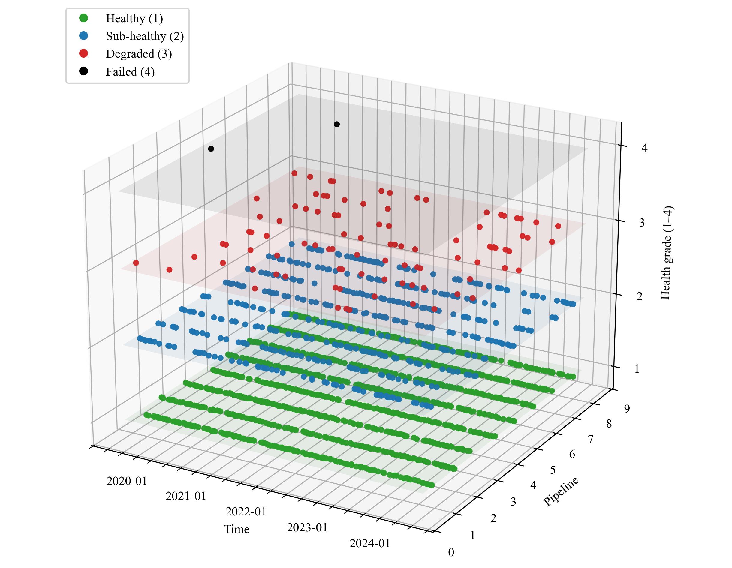 图6 数据集中不同健康状态对应的数据采集日期和采集管道分布