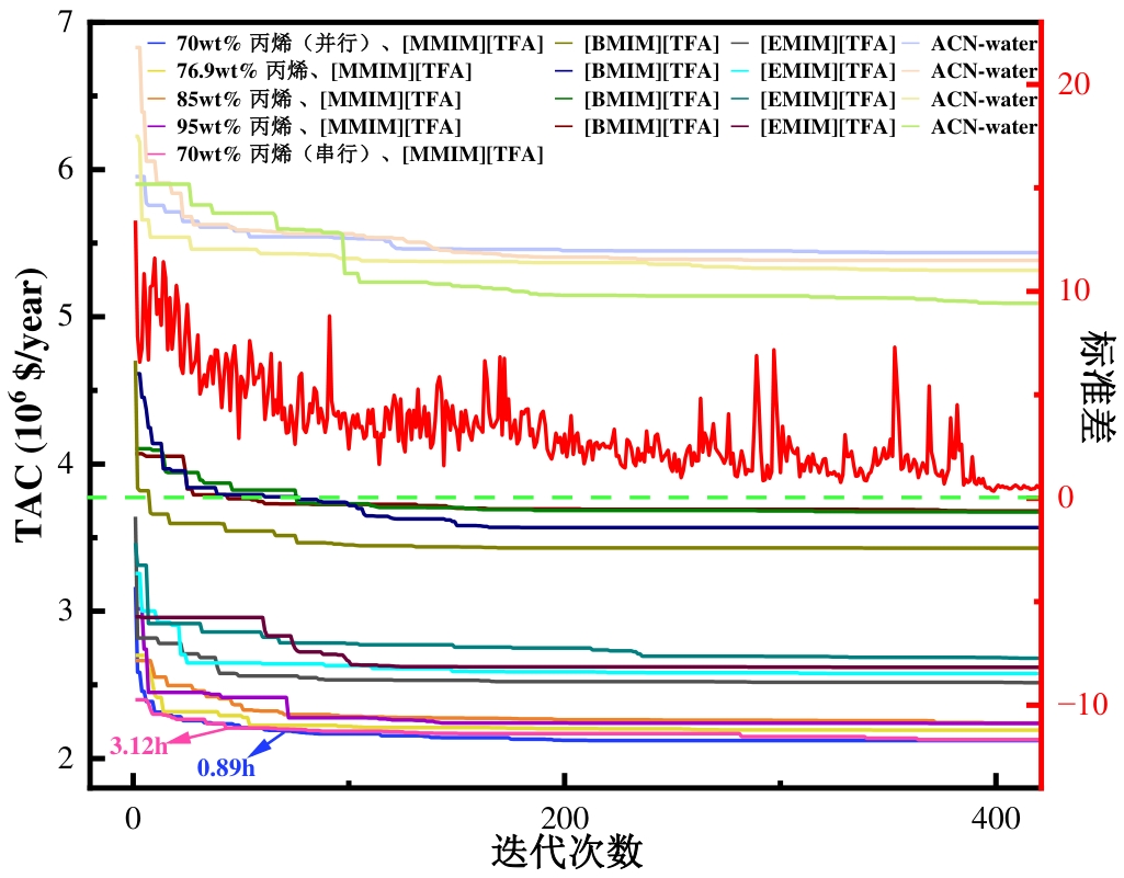 丙烯/丙烷分离的离子液体设计与工艺并行优化