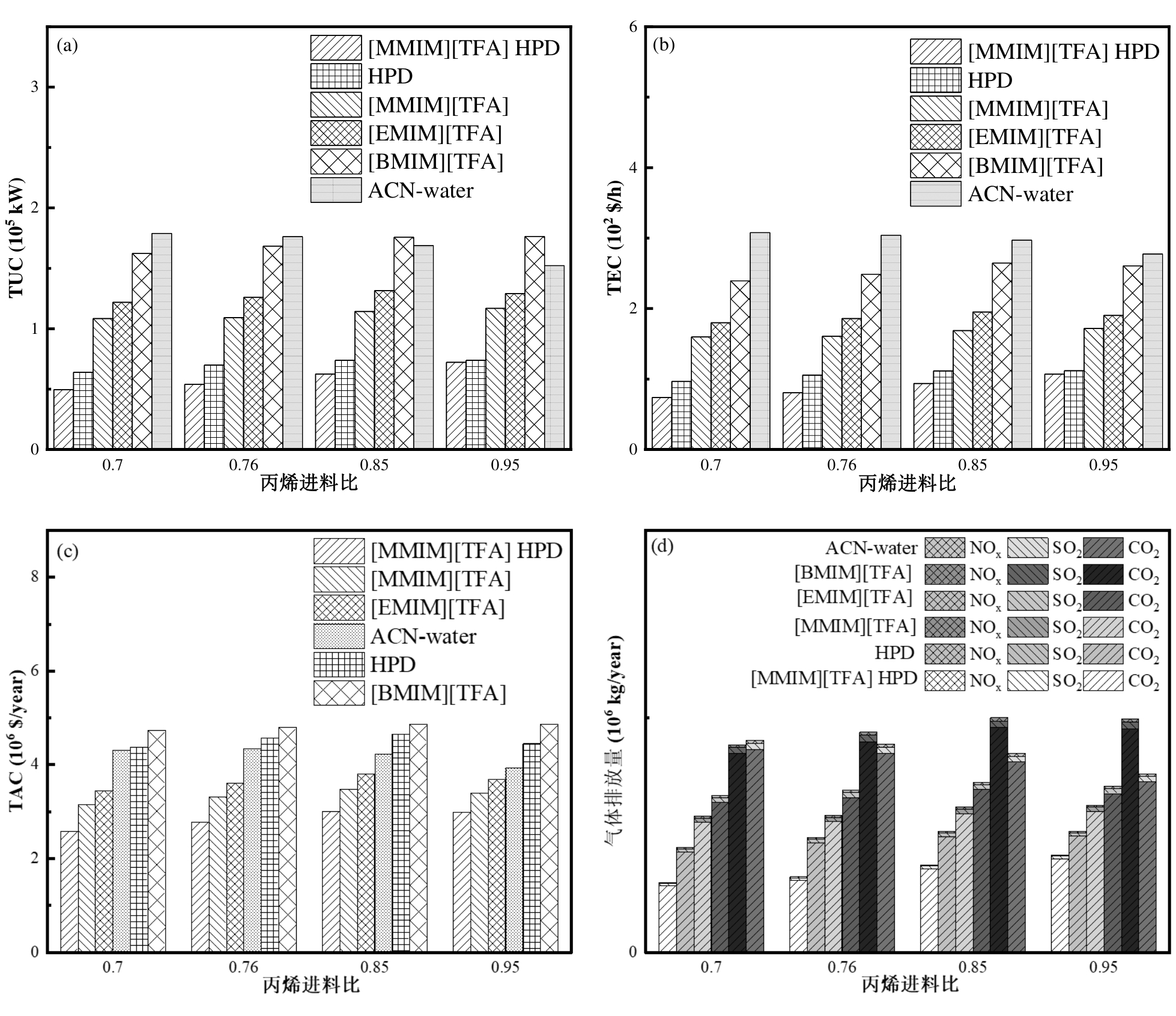 Key words: propylene/propane, ionic liquid, extractive distillation, separation mechanism, particle swarm optimization