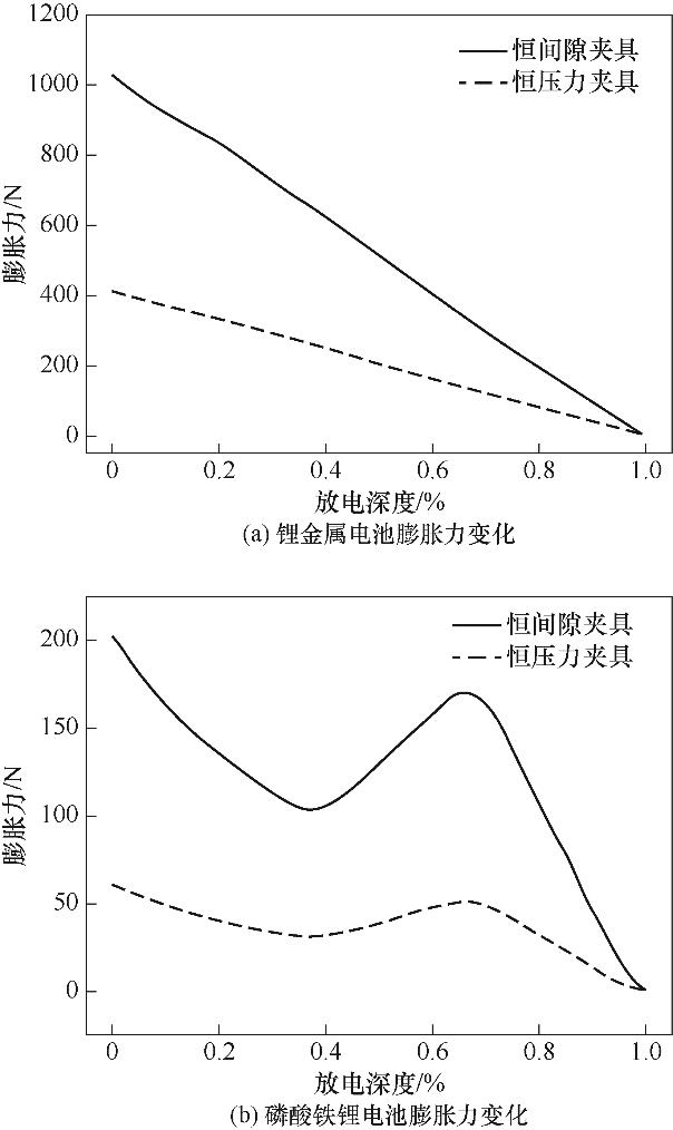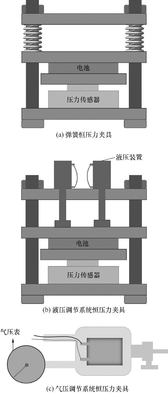 | 恒压力夹具 | 弹簧式 | 低 | 低 | 可以接受膨胀力在一个较小的范围内波动 | 测量结果受弹簧刚度影响很大 |