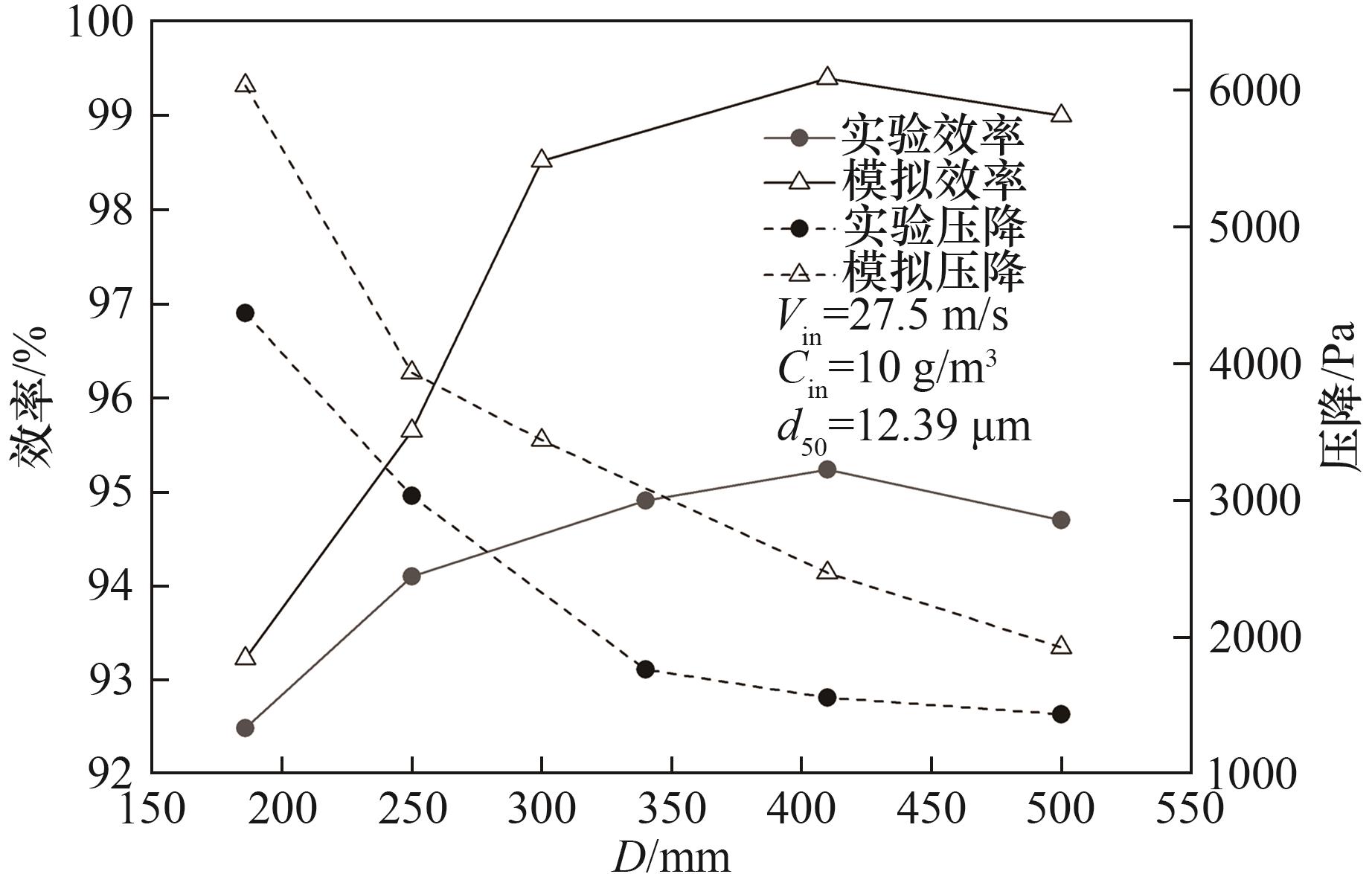 关键词: 旋风分离器, 两相流, 计算流体力学, 筒体直径, 性能