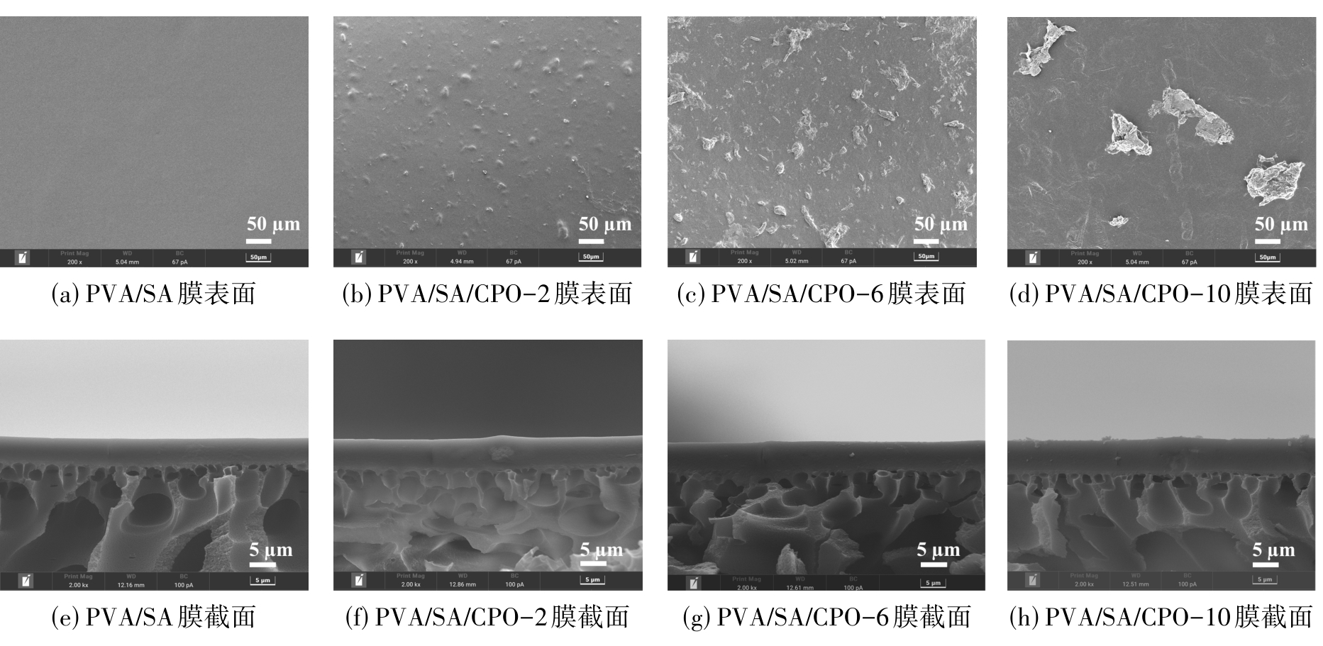Table 1 Tensile strength and tensile elongation of PVA/SA/CPO membranes