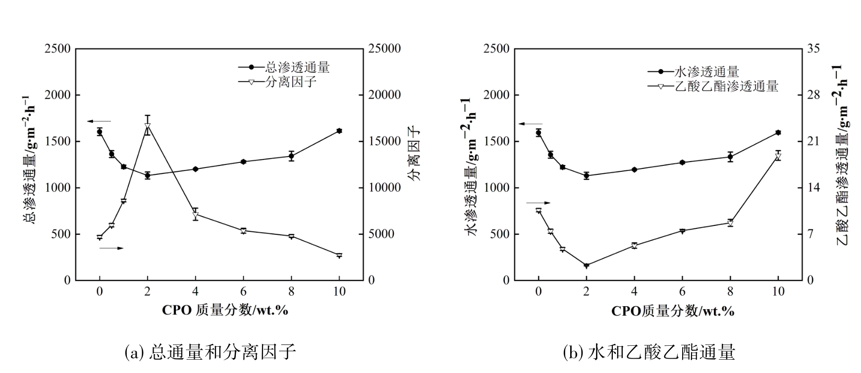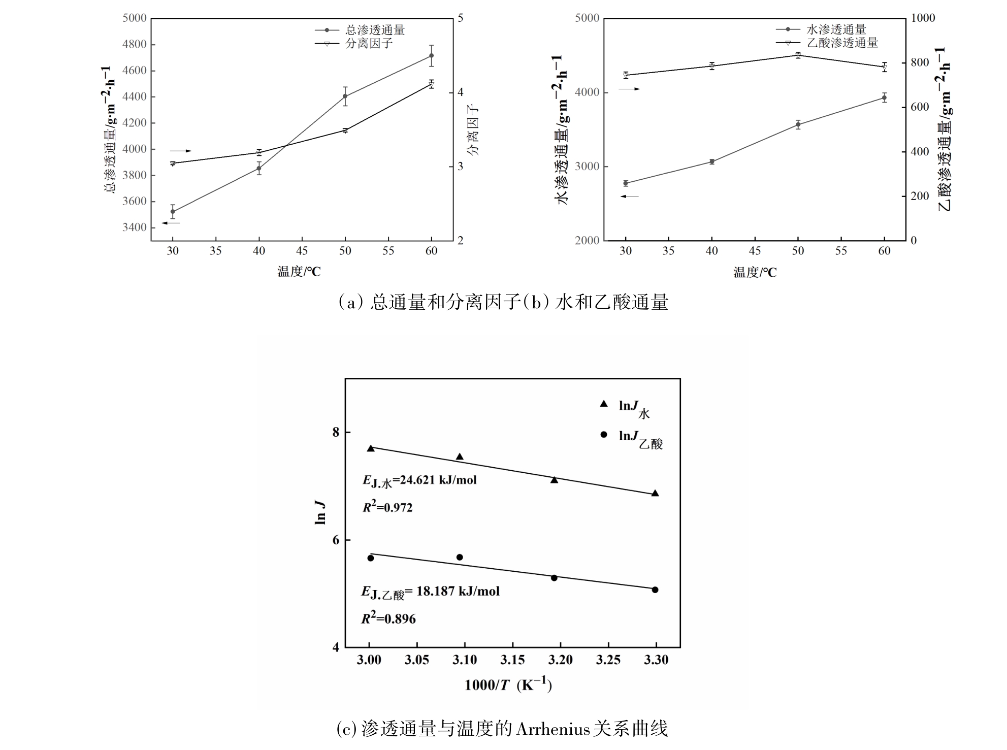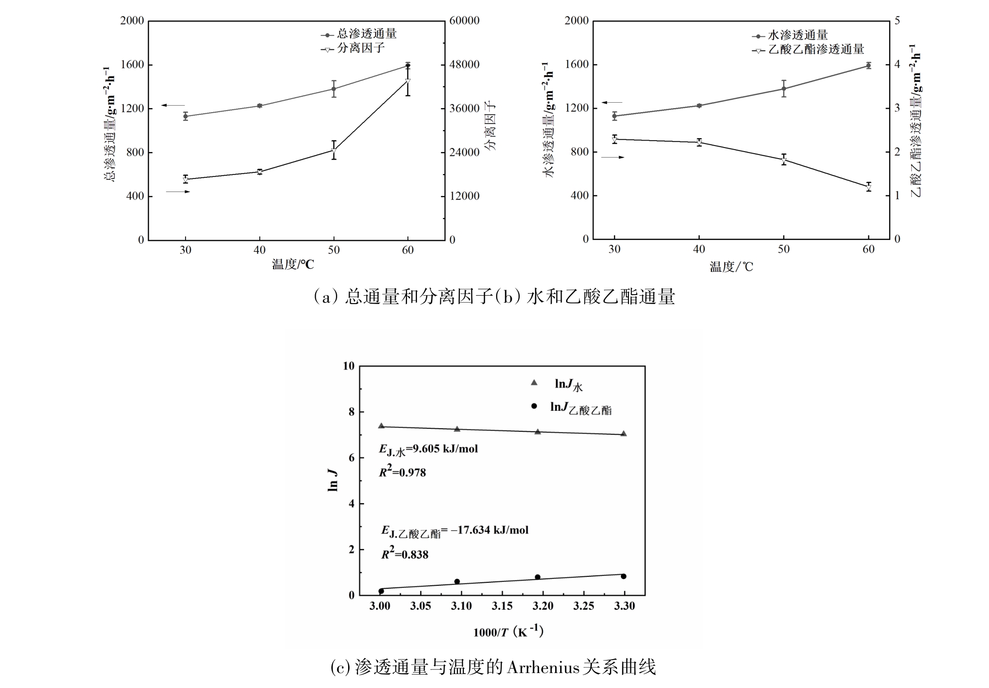 | 水-乙酸乙酯 | PBI/PEI | 60 | 2 | 820 | 2478 | [ |