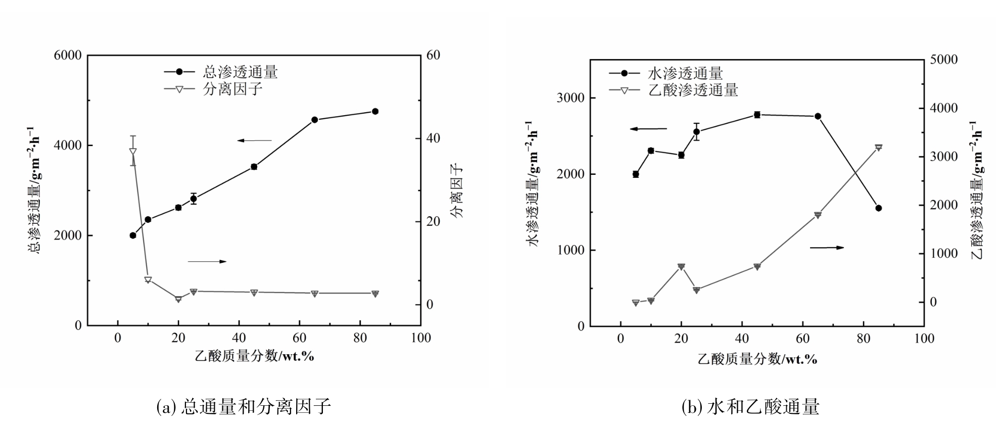 | 水-乙酸 | PVA/SPEK-C | 50 | 10 | 492 | 59.3 | [ |