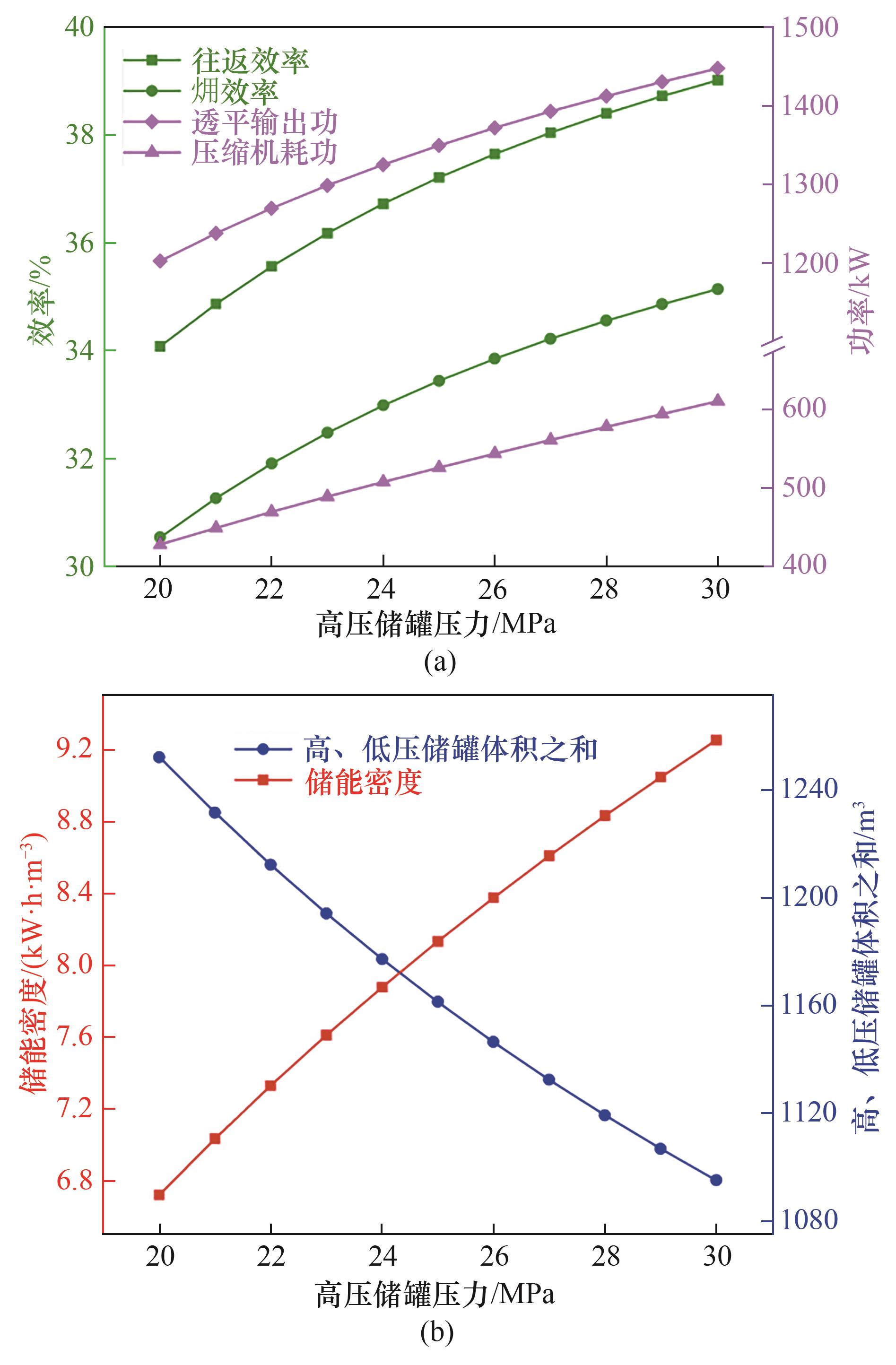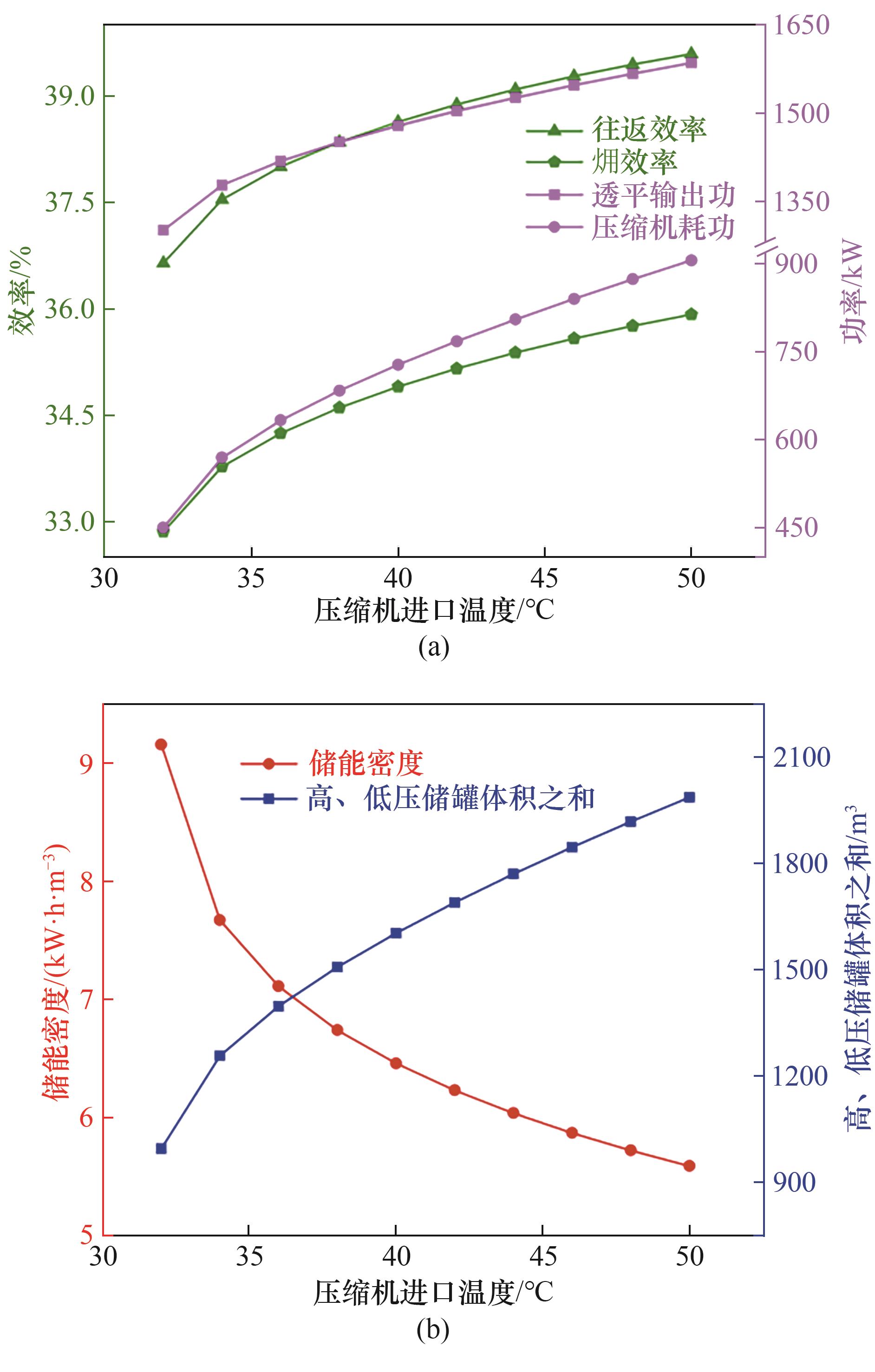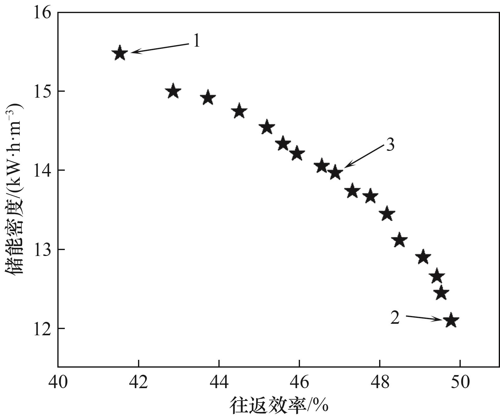 压缩二氧化碳储能系统因其往返效率高、储能密度大的优点受到广泛关注,被认为是一种极具发展前景的储能技术。提出了透平余热回收的超临界压缩二氧化碳储能系统并建立了系统热力学模型,基于热力学定律对系统进行关键参数分析及热力性分析;以系统的往返效率和储能密度为优化目标,采用遗传算法对系统4个关键参数分别进行单目标优化及多目标优化,获取了最优系统性能。结果显示,在给定参数下系统的往返效率为37.21%,㶲效率为33.44%,储能密度为8.31 kW∙h∙m-3;4个关键参数中,低压储罐压力和透平进口温度对系统性能影响更加明显;单目标优化获得最优系统的往返效率为52.69%,最优储能密度为17.16 kW∙h∙m-3;多目标优化获得一个综合性能良好的优化解,此时系统的往返效率为46.88%,储能密度为13.97 kW∙h∙m-3
