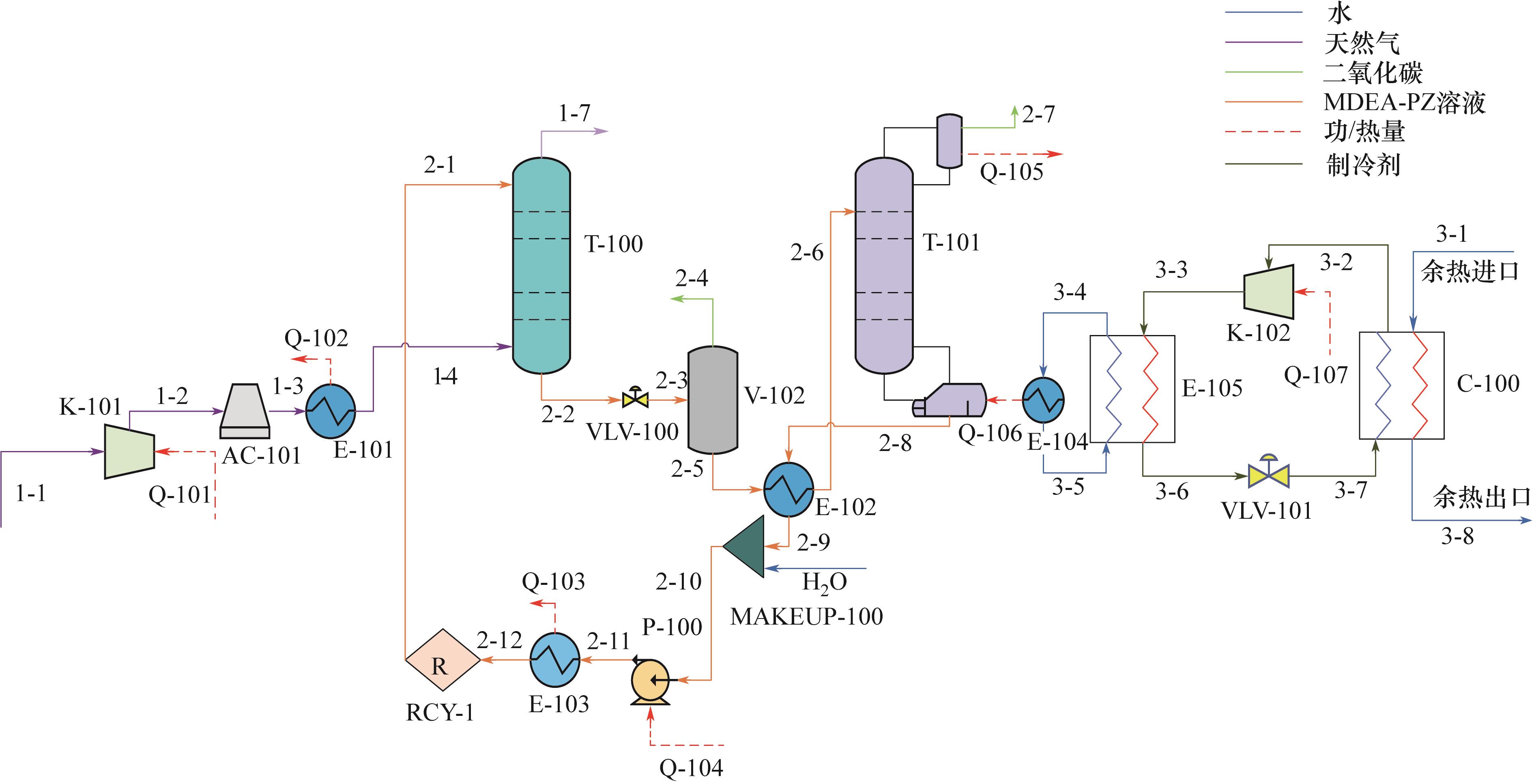 关键词: 脱碳, 高温热泵, 天然气, 余热利用, 化学吸收, 数值模拟