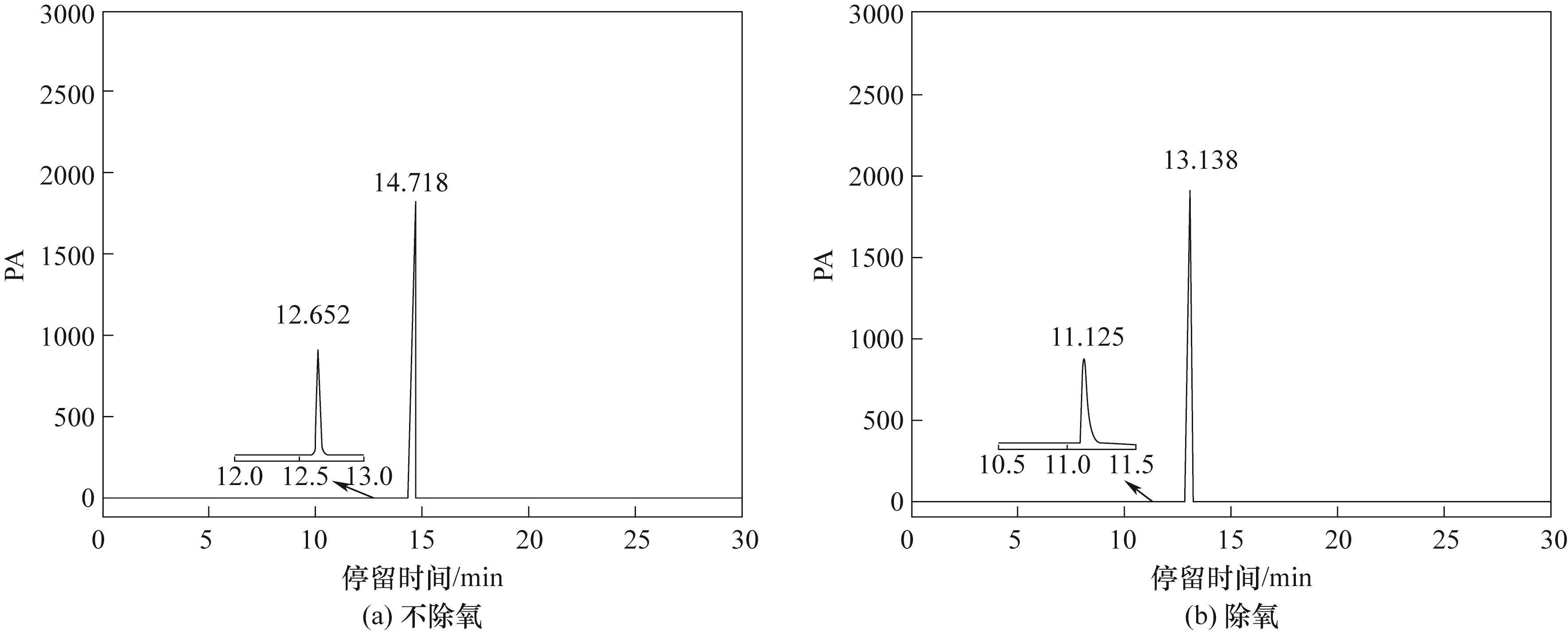 Fig.3 The gas chromatograms of the products after the reaction of amine solution in normal heating (a), heating in air (b) and deoxygenation heating (c) were obtained respectively