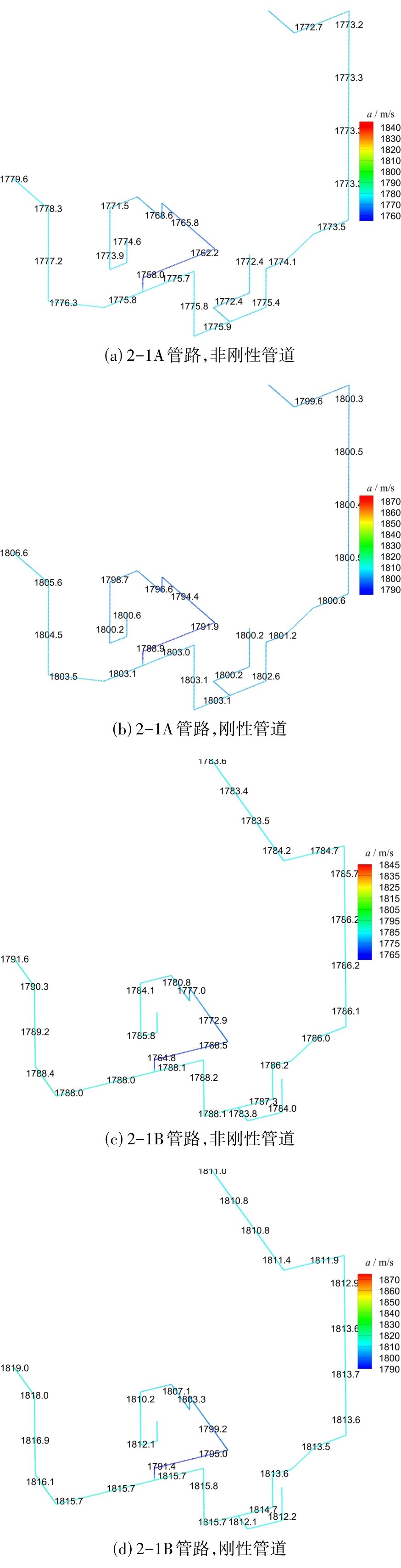 Average speed of sound for flexible and rigid pipelines (Operating condition)