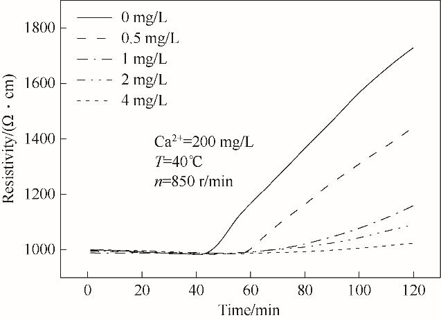 | 图6 添加羧甲基葡聚糖前后实验溶液电阻率与时间的关系 |