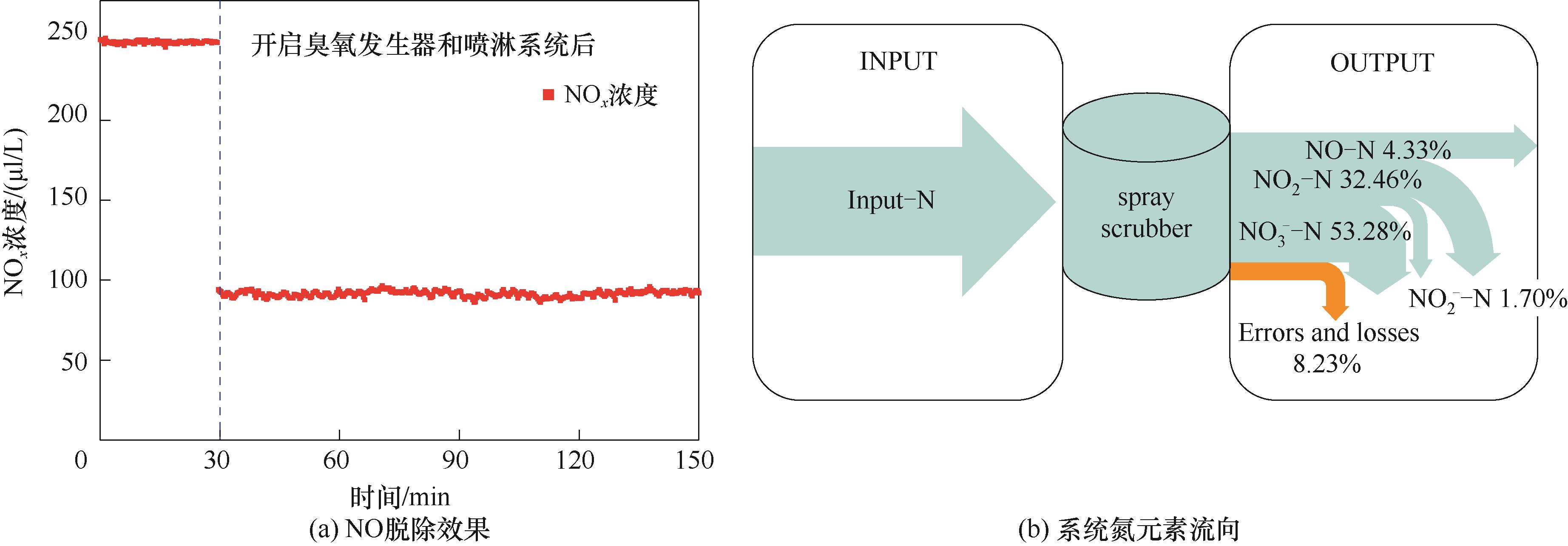 | 图6 O3/NO=1.3时单独氧化NO试验结果 |